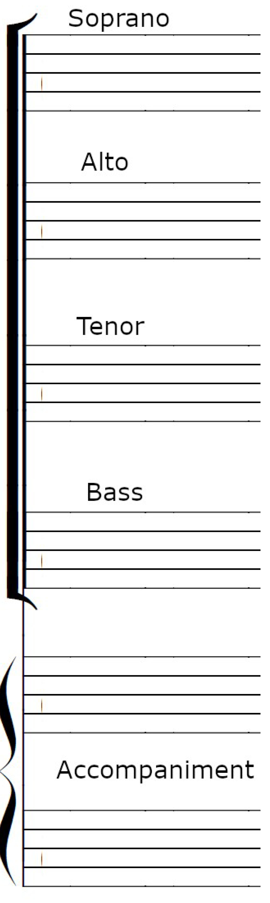 Several staves may be performed at the same time. They are then grouped together with a bracket